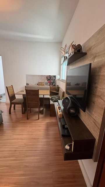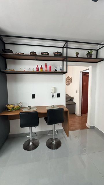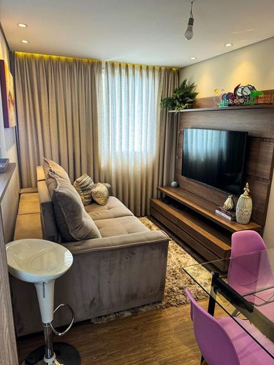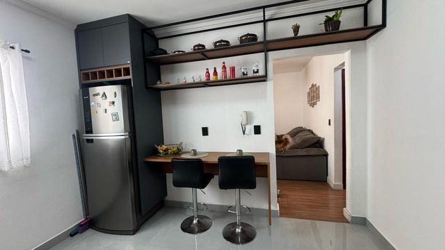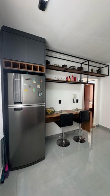 Apartamento mobiliado de 61m² composto por 2 dormitórios sendo 1 com sacada, banheiro social, sala, cozinha planejada integrada com área de serviço. Apartamento situado no 1º andar com 1 vaga de garagem coberta.