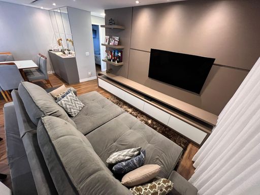 Apartamento a venda no Residencial Dreams - Paulínia com 87m com sala ampliada, 2 dormitórios, 2 banheiro (1 suíte), 2 vagas de garagem. Localizacao privilegiada, Moveis planejados de alto padrao em todos os ambientes, porcelanato na cozinha, lavanderia e banheiros, revestimentos e acabamentos de primeira qualidade. Trabalho em gesso com teto rebaixado em todo apartamento, contendo uma linda sanca na sala de jantar. Possui 3 aparelhos de ar condicionado.