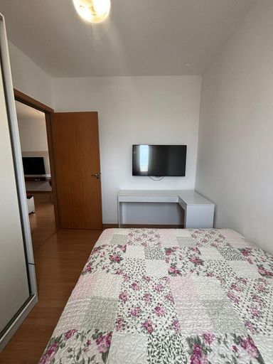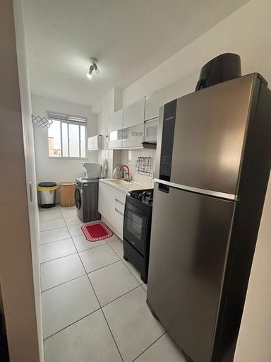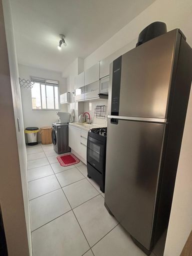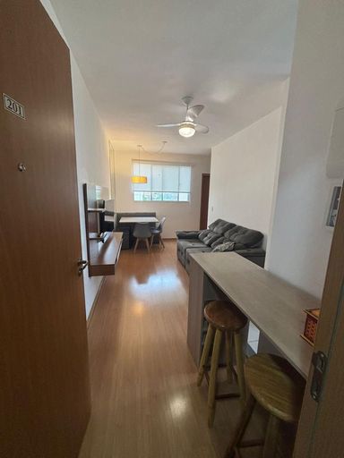 Apartamento a venda no Condominio Ponte Romana - Paulínia, 2 dormitórios com ar condicionado, 1 sala,1 banheiro, cozinha e lavanderia, pisos em ceramica na cozinha e banheiro, laminado e 1 vaga de garagem.