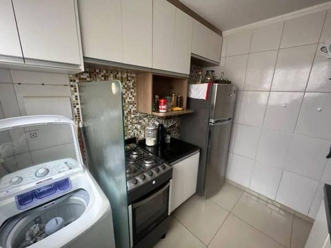 Espaço Inteligente: 2 quartos aconchegantes e living para 2 ambientes (sala de estar + jantar), Cozinha funcional com área de serviço integrada. 1 vaga de garagem coberta (seu carro protegido do sol e chuva!), Condomínio fechado com portaria e tranquilidade para sua família.
