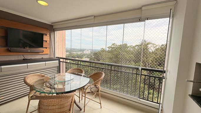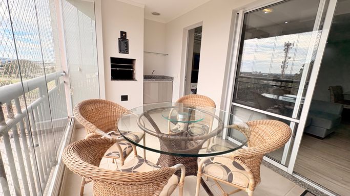 - Varanda Gourmet com churrasqueira e fechamento em vidro