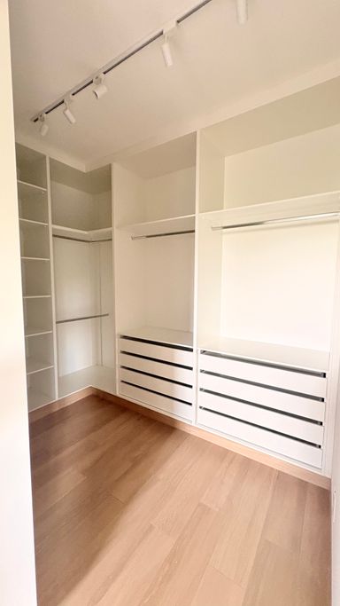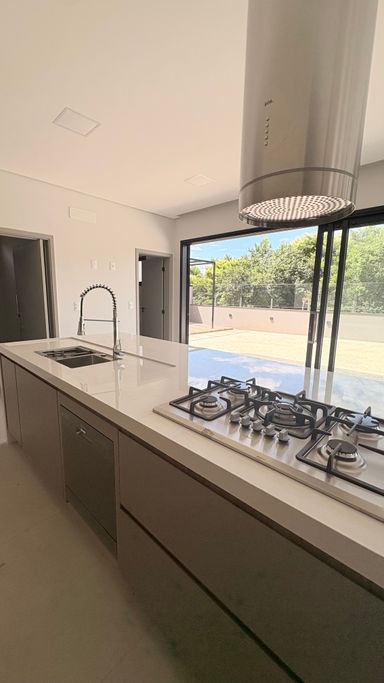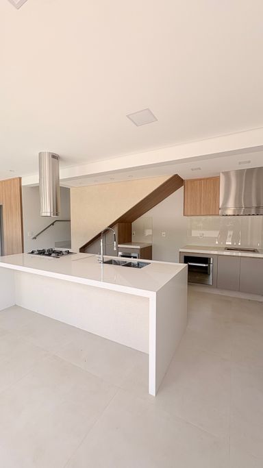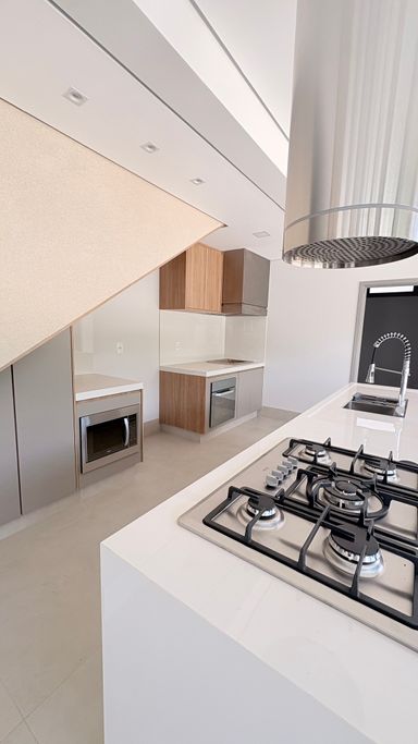 - Cozinha integrada a sala de estar toda planejada equipada com cooktop, microndas e forno.