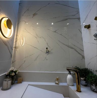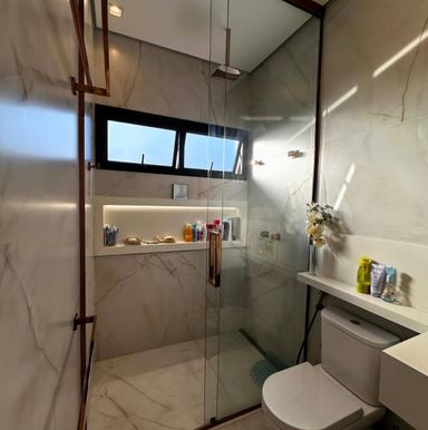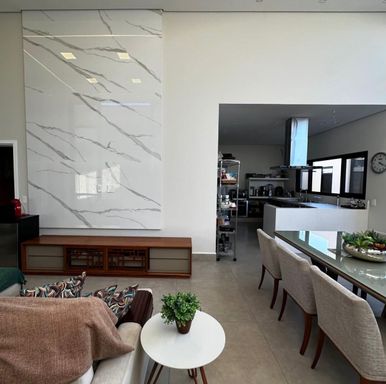• Luxo e Conforto: Pias esculpidas em quartzo branco na casa toda, detalhes em LED e um escritório dedicado para home office.