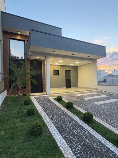 Casa a venda no Santorini Residencial Club - Paulínia, residência única, projetada para oferecer sofisticação, conforto e tecnologia em cada detalhei, casa impressiona pela fachada moderna e pelo acabamento impecável, Terreno de 300 m², Com 183 m² de área construída, Garagem para 4 carros (sendo 2 cobertas), 3 Dormitórios sendo todas suítes e espaçosas, Lavabo elegante e funcional, Infraestrutura completa para ar-condicionado, Piscina preparada para aquecimento, Sistema de boiler instalado, Janelas automatizadas para maior praticidade, Cubas importadas que valorizam os banheiros. Projeto arquitetônico com fachada incrível e design contemporâneo